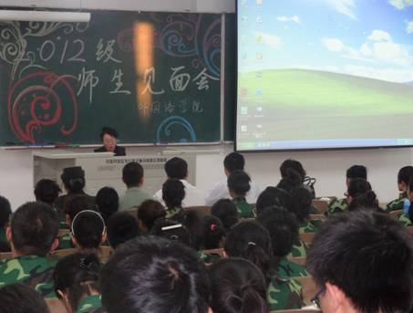 2012年9月5日17时30分,best365官方网站登录入口在丹青楼成功举办了2012级师生见面会及专业介绍会。best365官方网站登录入口院长王丹教授,党委书记辛淑英副教授,副院长郭永刚教授,副院长岳喜华教授,党委副书记、副院长于洋老师,英语教研室主任赵莉教授,日语教研室主任任力教授,俄语教研室主任吴芳教授,团委书记、09级政治辅导员玄凌老师,学生会秘书长、2011级政治辅导员常方圆老师,2010级政治辅导员张刚老师,2012级政治辅导员李靖坤老师出席了本次见面会。2012级全体新生参加了此次见面会。