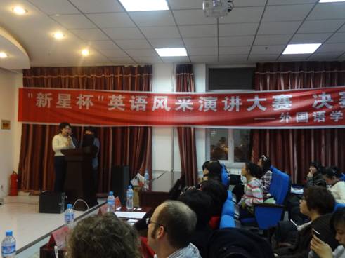 2012年10月26日18点,best365官方网站登录入口在文博楼1009室成功举办新星杯英语风采演讲比赛。担任本次比赛的评委有best365官方网站登录入口田雪凌老师、马佩红老师、齐艳老师,以及外教Ben Watson、Lindsey Seader、Steven Yue 。