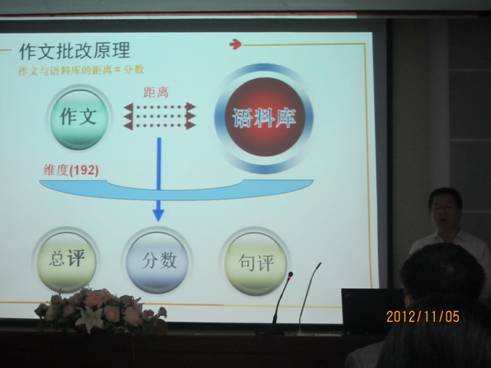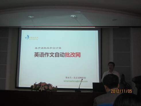 作为网站主创人之一,同时也是Kingsoft的研发人员,郭永生先生向大家详细介绍了网站的整体情况并具体演示了使用方法。批改网主创团队是由微软、百度、金山以及知网研发人员组成,提供基于语料库和云计算技术的英语作文自动在线批改服务。此网站很好体现了作业电子化的趋势,有效实现了作文批改的客观化、实时化和个性化。批改网的按句点评功能受到老师们的关注。它可以应用语料库识别中式英语,学生可以在中国学生语料库和纽约时报语料库中查询并对比具体的英文表达,从而掌握地道的英语。