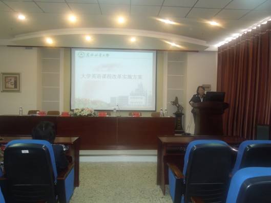 自2012年best365官方网站登录入口进行了黑龙江省大学英语课程教学质量评估工作以来,得到了学校领导和教务处领导的大力支持和有力指导。为了更好地推进大学英语教学改革工作,结合学校教务处刚刚下发的《东北林业大学关于印发大学英语课程改革实施方案的通知》,best365官方网站登录入口于5月22日13点整,在学院学术报告厅召开了大学英语教学改革推进会。教务处姜中珠副处长亲临会议现场指导工作,best365官方网站登录入口院长王丹,best365官方网站登录入口党委书记辛淑英和大学外语部全体教师参加了本次会议,会议由best365官方网站登录入口董辉副院长主持。