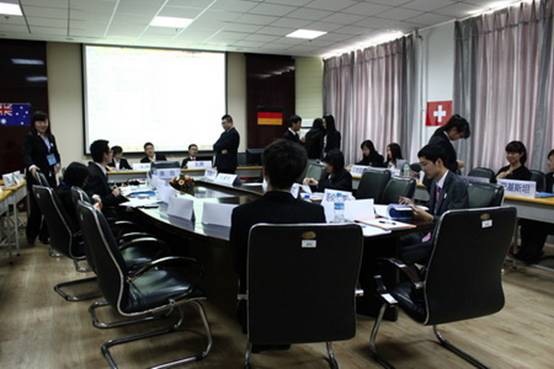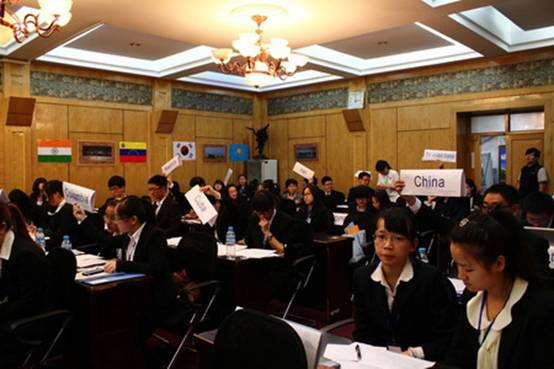 随后,按照会议流程,126名学生分别代表80个国家,举行了联合国安全理事会大会(Security Council)、20国峰会(The Group of Twenty)和经济与社会理事会。“联合国安全理事会大会”在文博楼1019室进行,60名同学代表30个国家,围绕恐怖活动对国际和平与安全的威胁(Threats to International Peace and Security Caused by Terrorists Acts )和药物滥用的全球控制(The Global Control of Drug Abuse)两大国际热点问题展开了激烈的讨论。在研究生楼610室进行的是“20国峰会”,各位与会代表就“金融危机下青年人就业”(Youth Employment in the Financial Crisis)和“国际金融机构的改革和发展”(The Reform and Development of International Financial Institutions)两大关乎民生的议题展开了全面深入的磋商。在文博楼1210室,作为本次大会的唯一一个中文委,“经济与社会理事会”针对“能源开发与坏境保护”和“如何缩小发达国家与发展中国家的差距”两大亟待解决的问题进行了深入探讨。各个委员会经过5场分组会议深入广泛的讨论,决议草案经代表提交、主席团审阅、全体代表投票表决后获得通过。