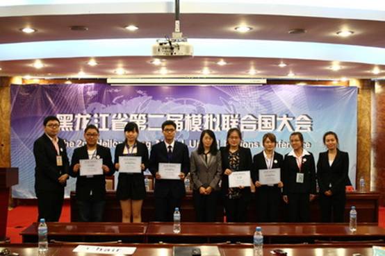 5月19日下午,闭幕式在国际会议厅隆重举行。best365官方网站登录入口院长王丹教授、英语系主任赵莉教授,英语系王楠老师参加了闭幕式。王丹院长称赞了各位代表在这次会议中所作出的突出贡献,并表示本次大会是对全体代表英语运用能力和问题分析能力的一次考验,真正实现了大会的教育意义。会上,各位老师还为获奖集体和个人颁发了荣誉证书。其中东北林业大学、哈尔滨工业大学、延边大学的模联代表团获得最佳代表团奖。至此,黑龙江省第二届模拟联合国大会圆满落幕。