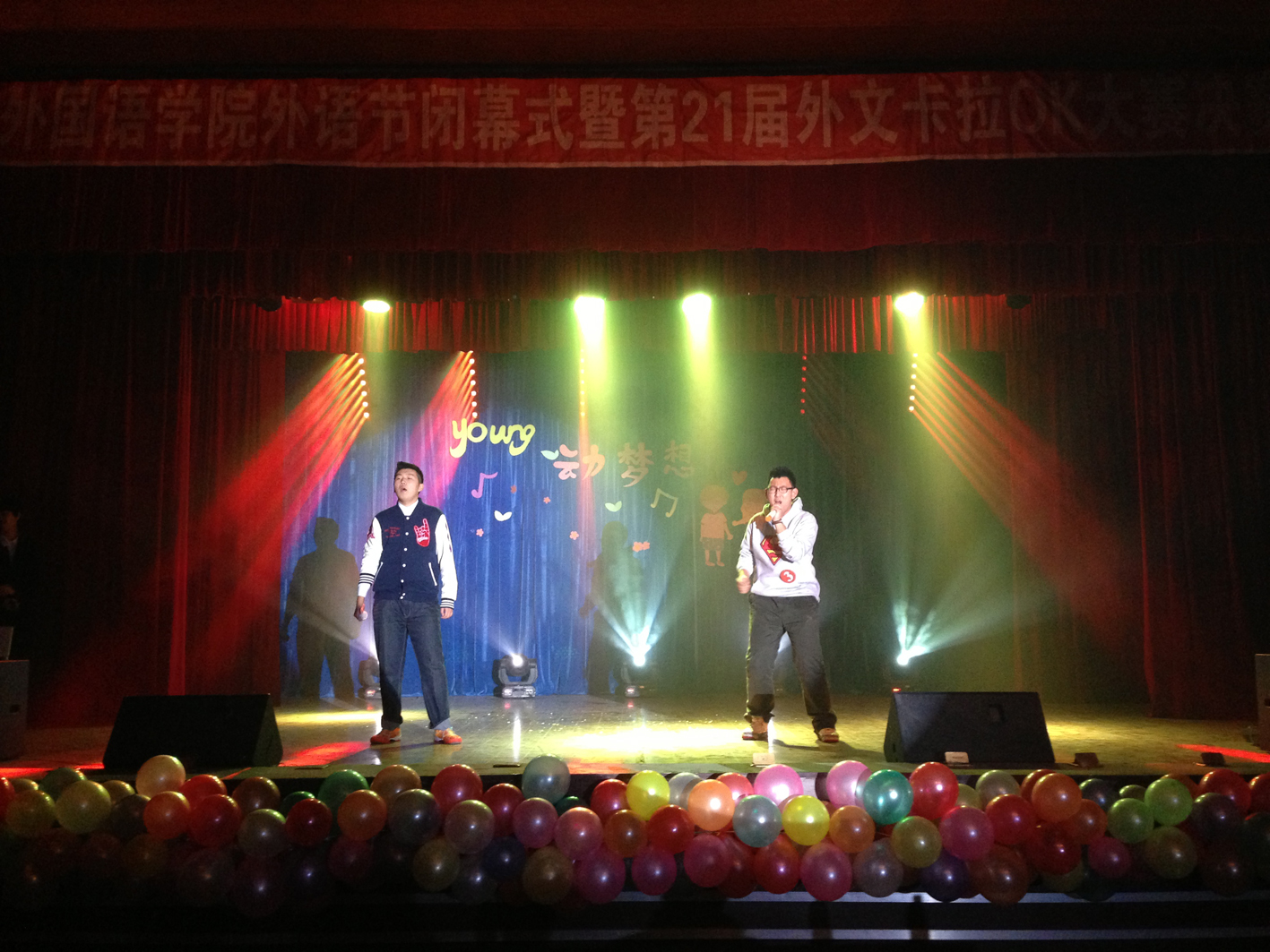 2013年12月9日18时30分,由best365官方网站登录入口举办的以“young动梦想”为主题的第二十一届外语节闭幕式暨外文卡拉OK大赛决赛在小礼堂顺利举行。best365官方网站登录入口党委副书记、副院长郭永长老师,英语系教研室主任赵莉老师,日语系教研室主任王佳音老师,俄语系教研室副主任车琳老师,院团委书记、2011级政治辅导员郭林老师,2012级政治辅导员李婧坤老师,2013级政治辅导员袁野老师,校学生会、各学院学生会代表和各学院学生亲友团莅临本次晚会。生命科学学院团委宋天宇老师、best365官方网站登录入口外籍教师Lindsey、Tom、Heather、千叶真子等出席本次比赛并担任评委。