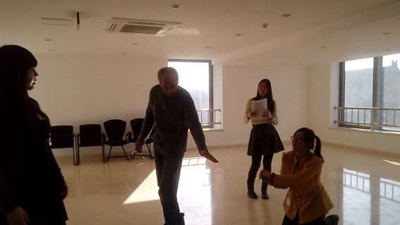 此次大师班是香港中文大学英语系及艺术行政办公室为 “第十届中国大学莎剧比赛”举办的培训项目,北京地区共26所院校参加,包括中国人民大学、浙江大学、南京大学等一流院校。培训期间,主办方邀请了美国百老汇著名戏剧家Joe Graves 及舞台剧演员Liz。Joe Graves毕业于伦敦艺术表演学院,现任北京大学外国戏剧与电影研究所艺术总监,已在美国、英国和中国导演过近五十部古今话剧、音乐剧和歌剧,饰演过100多个话剧角色。他向选手们示范如何将台词与舞台表演艺术有机结合,如何将作家的创作意图、人物性格充分传达给观众,并专门就语音、语调、重音等问题给予了重点指导。best365官网代表队极为珍惜这次机会,认真学习,虚心听取专家意见,针对参赛作品反复排练。学生们表示,从Graves先生身上我们看到的是一种对戏剧的极大热爱,对表演的极度热情,看Joe 的演绎很容易爱上艰涩难懂的莎剧,此行不但加深了对莎剧的感情,同时亦增加了演好莎剧的信心。