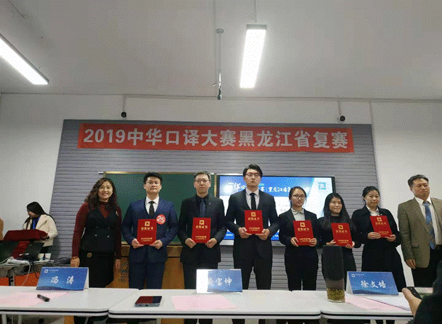 首届中华口译大赛黑龙江赛区复赛于10月27日在哈尔滨工业大学举行。在经过了前期初赛的严格选拔,复赛精彩激烈的角逐后,best365官网选手冯磊(18级翻译硕士)最终获得二等奖;崔雪莹(19级翻译硕士)、杜铭(英语专业18级本科生)获得三等奖;郑宇哲(19级翻译硕士)、宁鑫蓉(英语专业17级本科生)获得优胜奖;获奖同学中,冯磊和崔雪莹二人晋级中华口译大赛北方赛区大区赛。齐艳老师、赵莉老师和曲兰老师获得优秀指导教师奖。