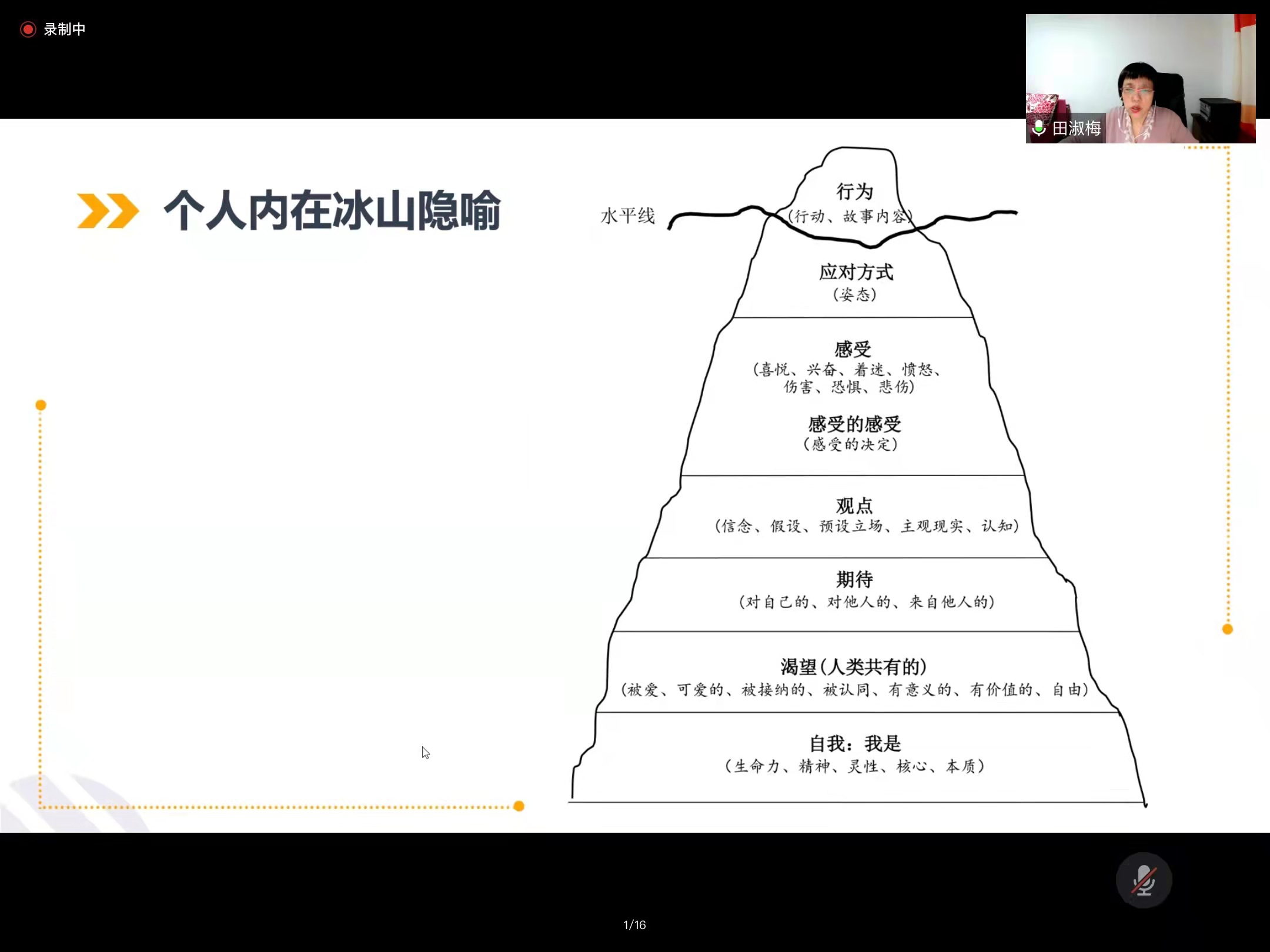 田淑梅教授在讲座的前半程向同学们介绍了情绪在人们生活里的作用和影响,她运用举例说明以及“情绪保险箱”等方法教给同学们如何能有效地管理自己的情绪。随后,田淑梅教授讲授了如何运用“冰山理论”进行有效情绪管理的方法,并带领同学们结合个人实际情况代入到冰山图中,形成对自己的总体认知,从而达到让学生更全面、深入地关注自身、了解自身的目的。