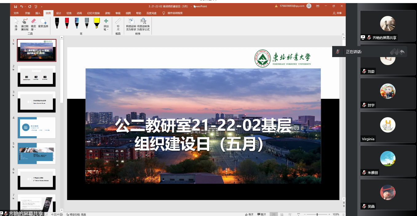 2022年5月16日下午13:00,大学英语第二教研室全体教师在线上参加了本学期第二次基层组织建设日活动,本次活动由教研室主任齐艳主持。