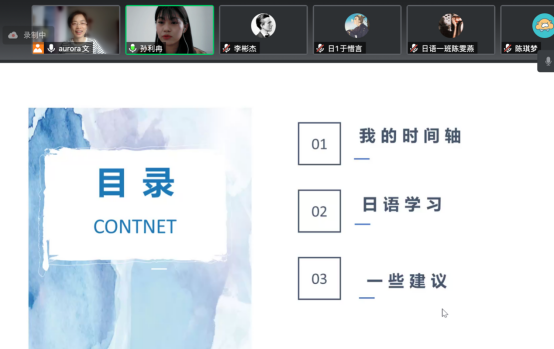 2022年5月25日下午,2021-2022学年度日语系学习经验分享会以腾讯会议的形式顺利召开,会议历史近3个小时。莅临本次会议的有日语系主任姚晓丽老师,赵丽莉老师和文慧超老师。日语系优秀学生代表以及日语系大一全体学生参会。
