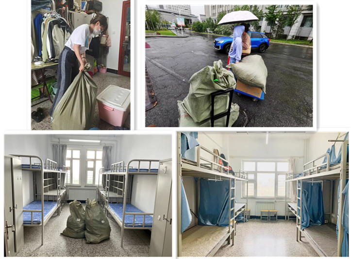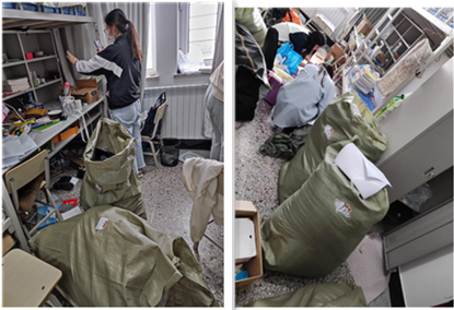 当天下着小雨,但是每位党员和积极分子们都认真负责、不辞劳苦,把毕业生的行李打包完毕后拉到快递中心邮寄后,又回到毕业生寝室把垃圾清扫干净。原本物品满满的寝室,在清扫完毕后干干净净,非常明亮。