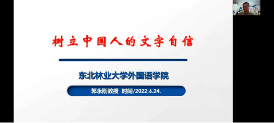 汉字是中华民族的伟大发明和智慧结晶,为了让外语学子深入了解汉字文化,2022年6月24日下午14时,best365官方网站登录入口郭永刚教授为外语学子们带来了以“建立汉字谱系,树立中国人的文字自信”为主题的汉字文化知识讲座,带领外语学子们体验汉字的独特魅力,传承中华文化。