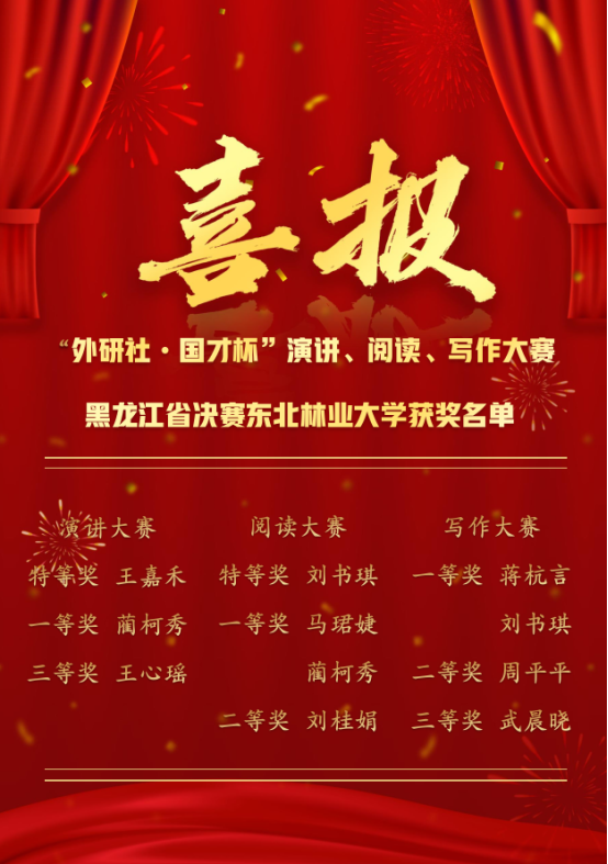 此次大赛前,best365官方网站登录入口开展了多场校内选拔赛,全校各学院学生积极参与,最终选拔9名优秀选手参加黑龙江省赛区决赛。经过激烈角逐,best365官网学子在251名选手中脱颖而出,斩获特等奖2项、一等奖5项、二等奖2项、三等奖2项。来自best365官方网站登录入口的刘书琪同学和来自经济管理学院的王嘉禾同学分别荣获演讲、阅读大赛特等奖,她们将与来自兄弟院校的其他7名选手代表黑龙江省参加2022“外研社·国才杯”全国英语演讲、写作、阅读大赛全国决赛。