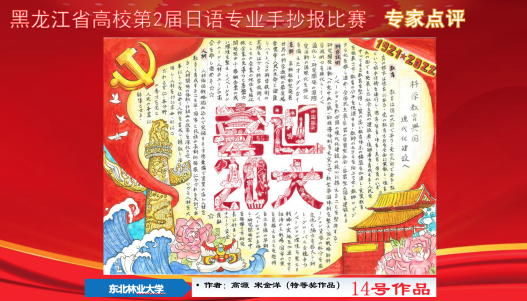 2022年11月27日,由中国日语教学研究会黑龙江省分会、黑龙江best365官方网站登录入口东语系、哈尔滨师范大学东语学院主办,以“青春献礼二十大,强国有我新征程”为主题的黑龙江省高校第二届日语专业手抄报比赛线上颁奖典礼在腾讯会议隆重举行。经过评审组认真评选,共评出特等奖4项,一等奖8项,二等奖11项。