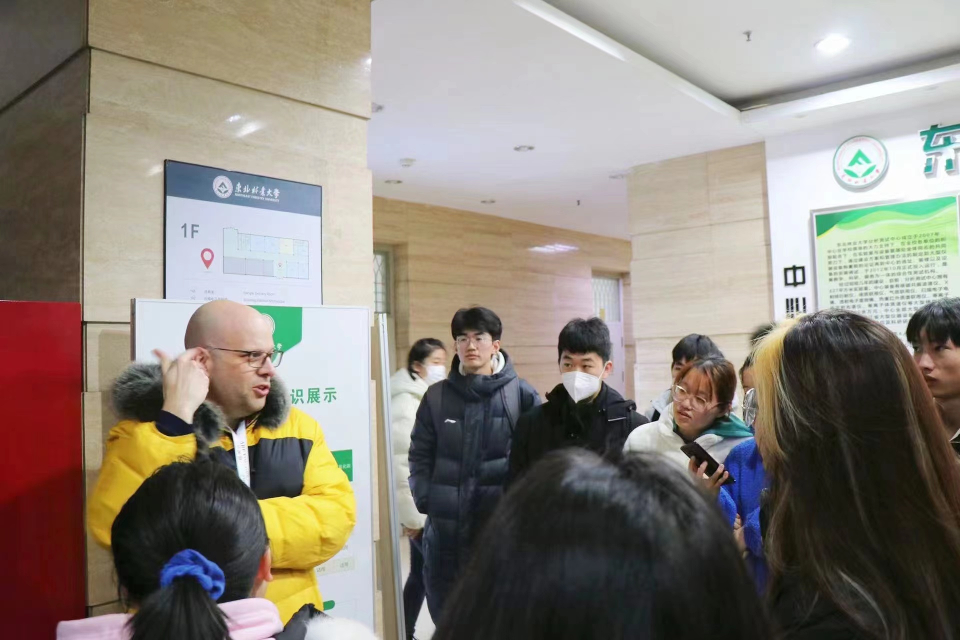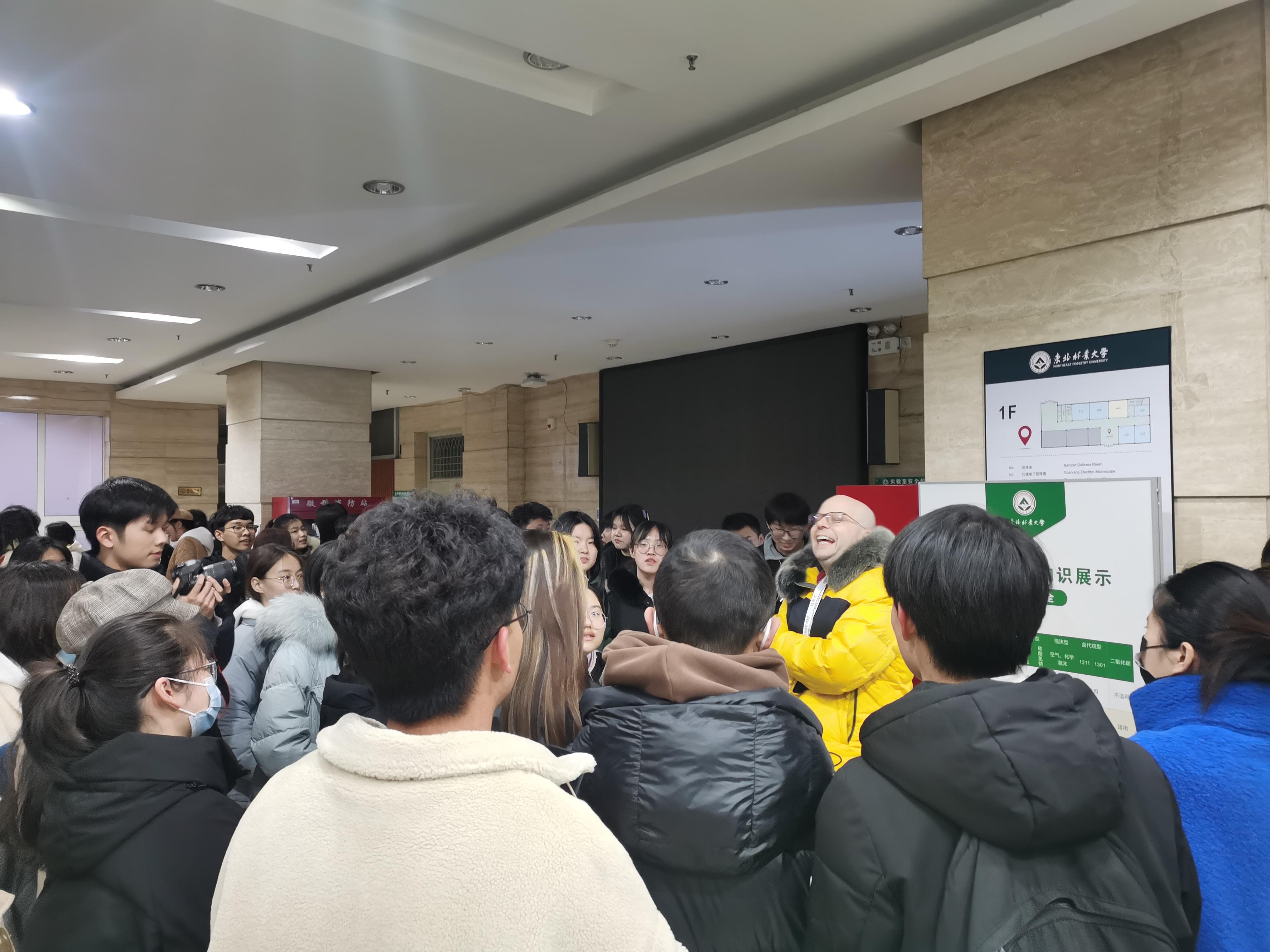 best365官方网站登录入口外语教师Ben和他的两个儿子Iain和Allister共同出席了本次活动,活动刚开始Ben就感叹了当天前来交流学习人数之多。一段精彩的开场白后,他向大家介绍了Iain和Allister,Iain喜欢绘画,Allister喜欢滑雪,并表示他们很愿意和大家交流。接着Ben就让同学们自由讨论和提问,在轻松的聊天中交流个人兴趣和两国文化等话题。