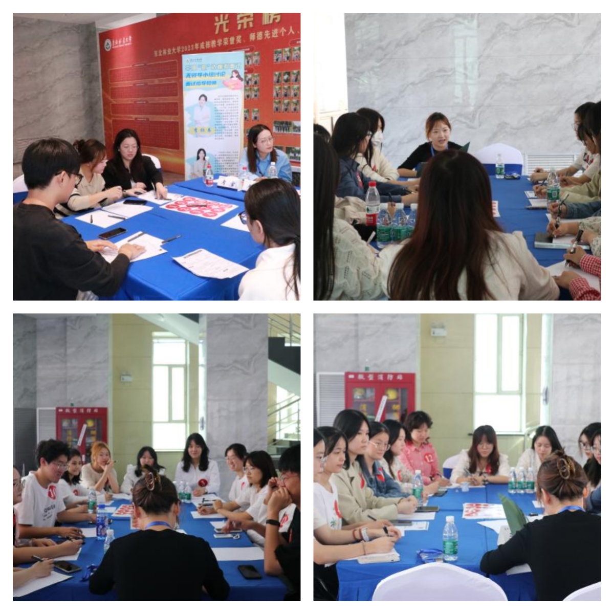 近几年来,无领导小组讨论面试法得到越来越多单位的认可,无论是公务员面试还是企业面试都倾向于用这种方法。无领导小组讨论模拟面试由两位经验丰富的老师组织大家进行,你来我往、旗鼓相当,激烈的交流、话术的运用、专业的指导,两位老师引导大家在无领导小组中“脱颖而出”,在短时间内展现出自己的特长和优势,讨论结束后,两位老师针对活动中所有同学的表现逐一点评,根据同学们的个人特点给出专业的建议和指导,参与的同学表示本次无领导小组讨论的模拟是一次难能可贵的机会,有不少同学特意将身上的贴纸标签带走,留作珍贵纪念。