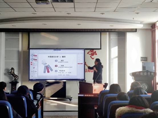 为帮助best365官网本科生更好地了解best365官方网站登录入口硕士研究生的招生政策和培养特色,扩大学科影响力,助力best365官网本科生的升学规划,best365官方网站登录入口于11月20日成功举办了“学科开放日”活动。活动邀请学院院长董辉、副院长张鸣瑾以及英语语言文学学科负责人董晓烨、俄语语言文学学科负责人赵秀玲、翻译专业领域负责人齐艳、翻译专业领域骨干教师高慧敏参加,分别就学科发展、师资力量、学科特色和研究生培养等方面进行了深入解读。全体本科三年级学生参与了本次活动。