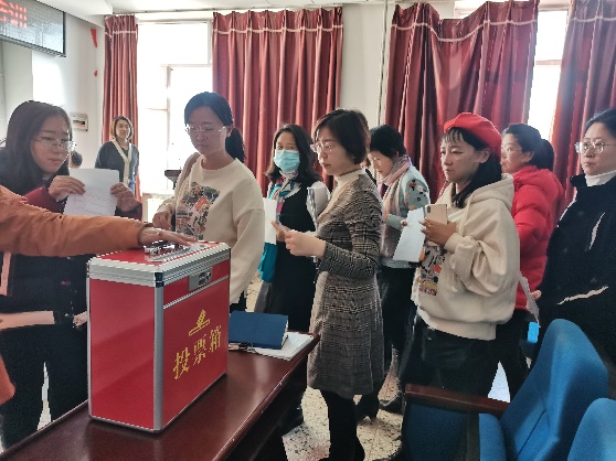 李梦阳主持选举best365官方网站登录入口出席第七届教职工代表大会暨第十四次工会会员代表大会代表投票环节。由计票同志清点到会教职工人数,填写《清点人数报告单》,best365官方网站登录入口共有教职工109人,此次会议共参会教职工100人,符合选举要求。经过差额选举,最终选举出席第七届教职工代表大会暨第十四次工会会员代表大会代表为王丹、王晓妍、王晚明、齐艳、张彪、张鸣瑾、陈志伟、金晓满、郭林、董辉、董晓烨十一位同志。(按姓氏笔画排序)