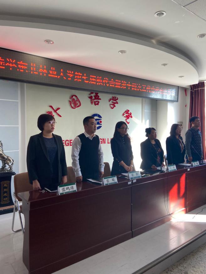 下午14:00大会隆重开幕,全体起立,奏唱《中华人民共和国国歌》,“双代会”在庄严的国歌声中开始。会议由党委副书记郭林同志主持召开,首先由党委书记王丹同志宣读best365官方网站登录入口关于出席第七届教职工代表大会暨第十四次工会会员代表大会代表选举办法,该选举办法宣读后经大会讨论,全票通过。随后由董辉院长宣读学校关于best365官方网站登录入口出席第七届教职工代表大会暨第十四次工会会员代表大会代表候选人的批复。并根据选举办法规定,大会选举通过总监票人为李梦阳老师、监票人为洪雪娇、黄笑笑老师。并指定华裕涛、蒙博涵、薄红昕、李欣书同志为本次大会计票人,其中华裕涛同志为总计票人。