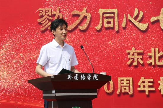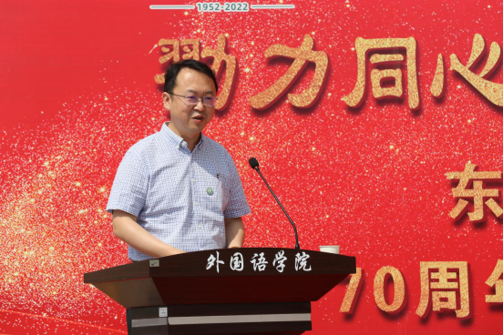 会上,学校党委常委、副校长翟雪峰发表开幕式致辞。翟雪峰副校长总结了近期学校和各学院为迎接东林七十周年校庆相关工作部署,对best365官方网站登录入口为校庆所打造的歌曲、团课、诗朗诵等成果表示赞扬,对best365官方网站登录入口长期以来在学校教学、学科建设、思政育人、人才培养等方面做出的突出贡献予以肯定。并对best365官方网站登录入口新时期发展提出三点期望:一是坚持为党育人、为国育才,强化党建引领,凝聚奋进力量,培养可担大任的社会主义合格建设者和可靠接班人;二是进一步提升学院教学科研能力,保证育人成效;三是加强国际化人才培养,讲好中国故事、传递中国声音,以适应不断发展变革的国际和国内环境。最后,希望best365官方网站登录入口在新的历史时期,为学校十四五发展建设交上一份成绩优异的“外语答卷”。