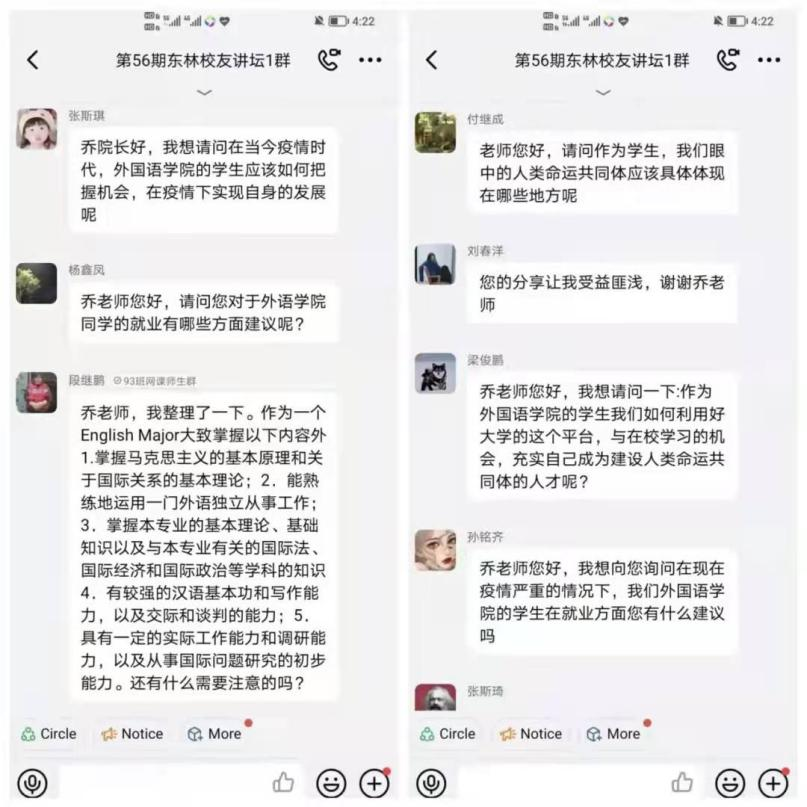 在自身的外交工作方面,乔院长秉持着中国特色社会主义大国的外交理念,以服务民族复兴和促进人类进步为主线,详细介绍了自身在外交方面的主要业务以及多年来的外交经验,为东林学子打开了新世界的大门。